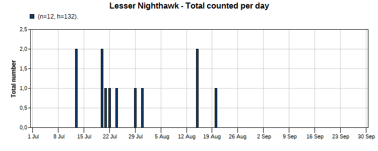 Lesser Nighthawk (9/55) Total Number 12 Max [2 7/13] Date Span (7/13-8/20)